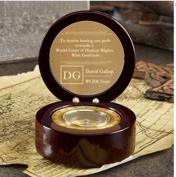 Gallup, before the grounds pass was administered, provided Kotulski wht a stipend to attend the Texas conference in March 2023. As a token of her gratitude, she gave him a compass as he was their lead explorer who has convened their WCHR Coalition effortlessly. Around that time, Melissa also organized a convention of two sets of WCHR statute drafters---the Kozma-Nowak-Scheinin drafters came to the coalition to engage with the Lucknow Drafter, Mark Oettinger of Vermont.