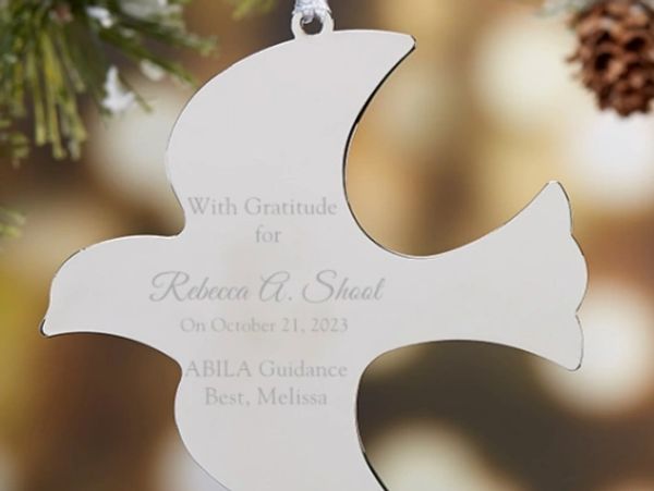 Rebecca also encouraged Melissa to attend the ABILA conference in October held at the Fordham Law School. To show her gratitude for such guidance in the negotiation of international affairs, Melissa sent Rebecca an dove-shaped ornament.